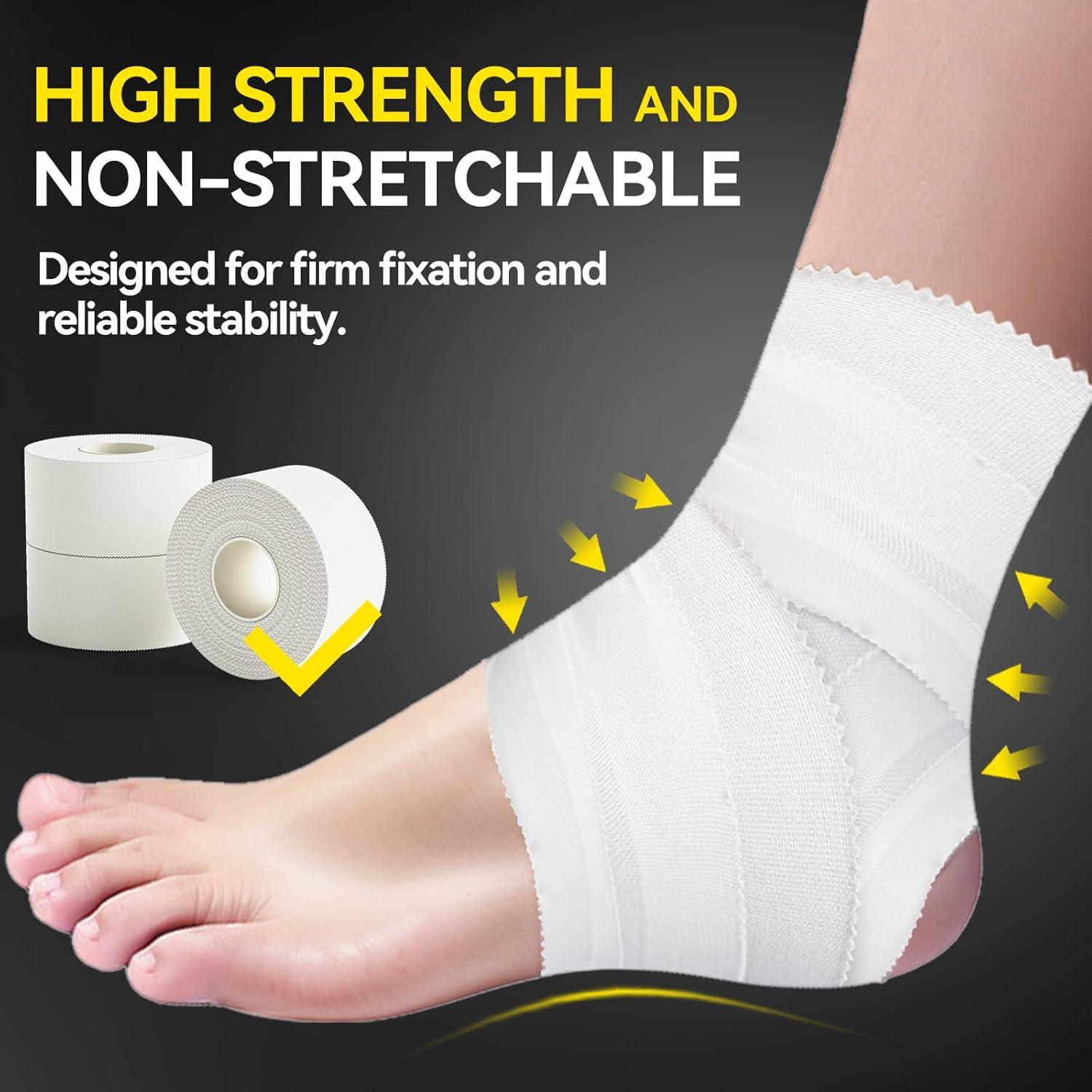 Outstanding Adhesive Strength: Our athletic tape boasts a robust adhesive that offers long-lasting fixation without leaving any residue on your skin. It provides reliable support that stays firmly in place throughout your activities.