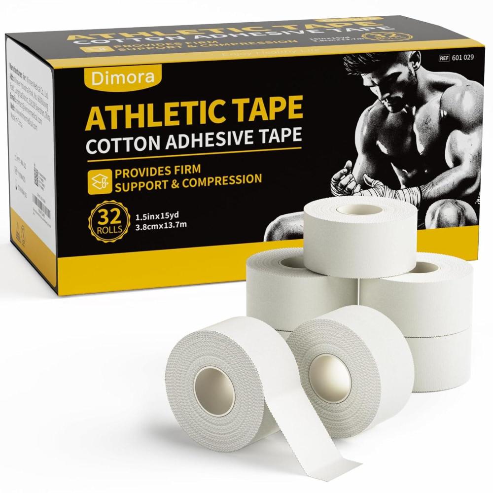 Dimora Athletic Tape, Easy Tear Sports Tape with Serrated Edges, Strong Adhesion, No Residue, Ideal for Gymnastics, Boxing, Lacrosse, Hockey and First Aid (White, 1.5 in x 45 ft, Pack of 32)