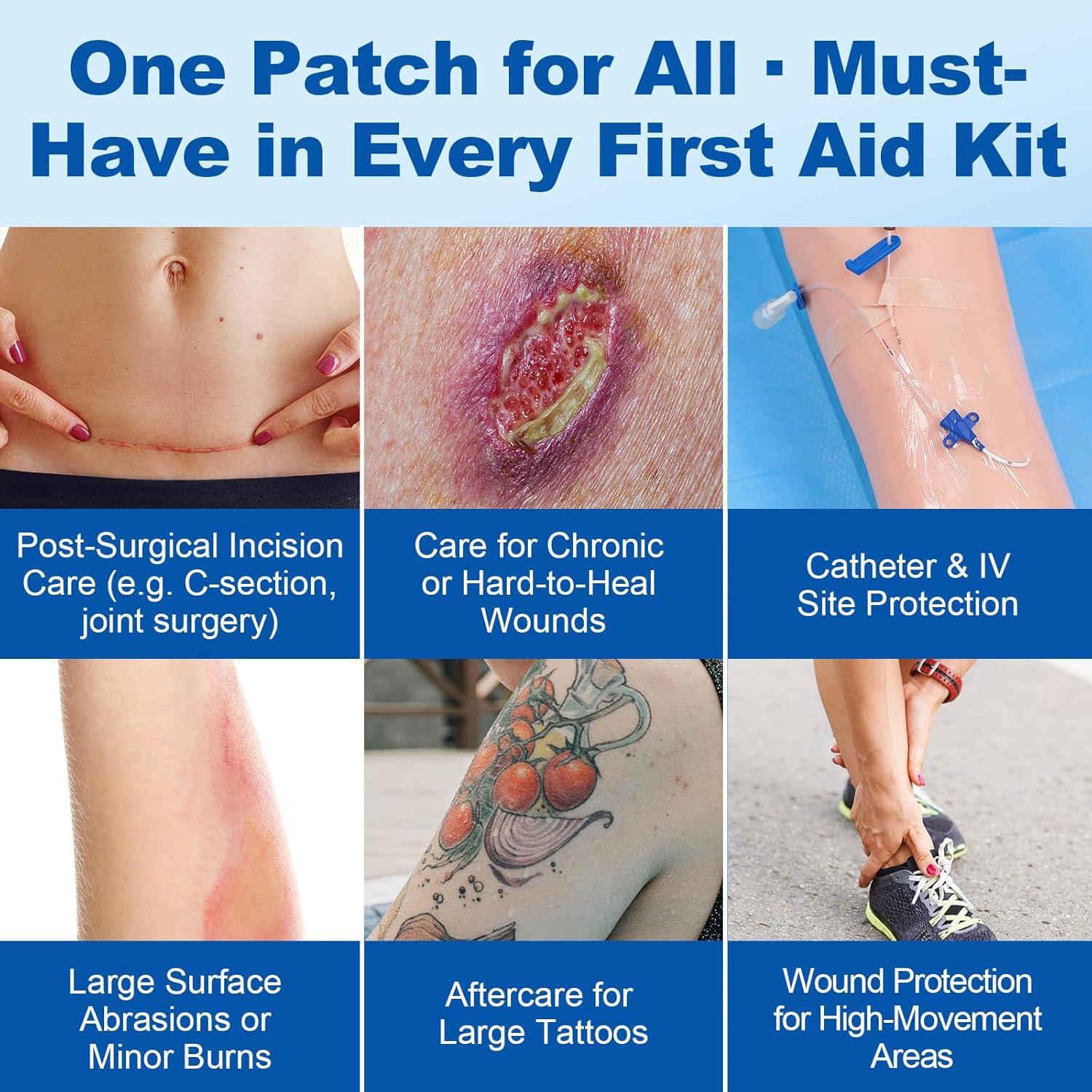 ✅ HIGHLY BREATHABLE & COMFORTABLE – The transparent film allows airflow while shielding the wound from external exposure. The soft, absorbent center pad manages exudate and cushions the wound, reducing irritation and promoting a more comfortable healing experience